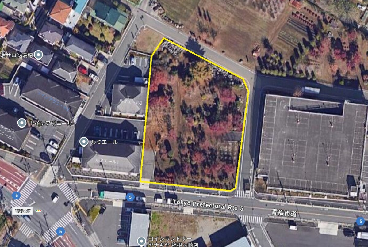 | 物件所在地 | 東京都瑞穂町箱根ヶ崎 | 土地面積 | 2,596㎡ |